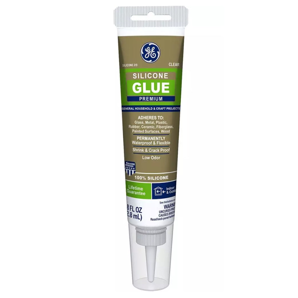 GE Silicone I, 2.8 OZ, 100% Silicone Glue, Waterproof and Airtight Adhesion, Sun/Freeze Proof, Won't Crack Or Crumble, Permanently Flexible, Use For General Household Repair's, Adheres To Tile, Porcelain, Glass, Wood, Steel, Aluminum and Some Plastics.